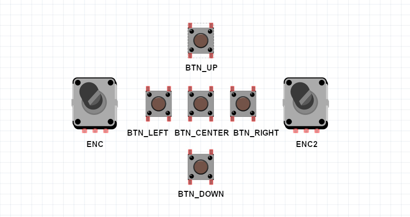 You can connect one or two encoders to replace/complete the buttons. One encoder (without buttons) is enough to control the device.